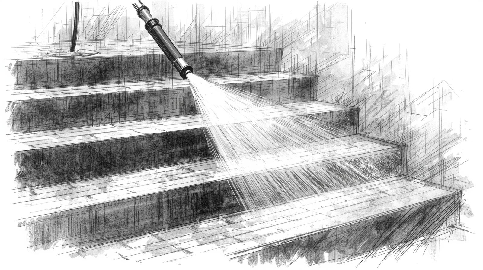 Nettoyage des abords, murets, escaliers et surfaces extérieures diverses.