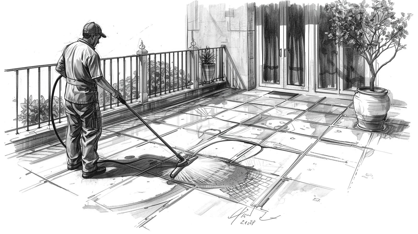 Nettoyage en profondeur des terrasses et balcons pour éliminer mousses et salissures.